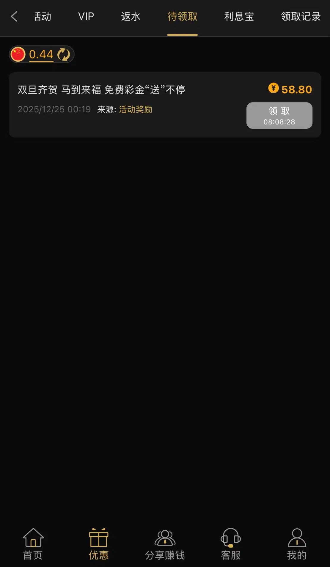 有号的兄弟登入上看看有没有这个彩金领取