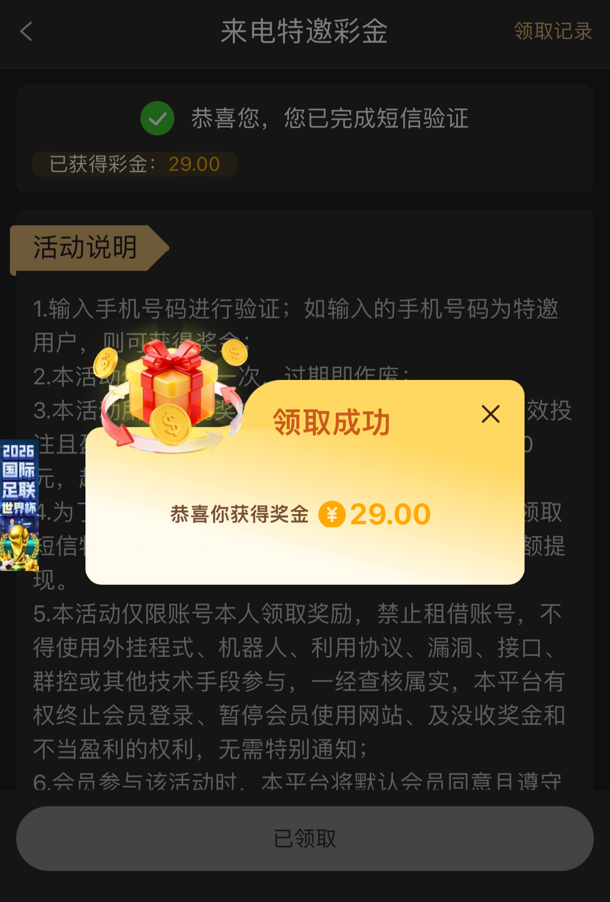 新用户可以先行注册在优惠里找到“来电特邀彩金”入口在里面申请,之前有注册不是特邀也可以登入上重新申请看看