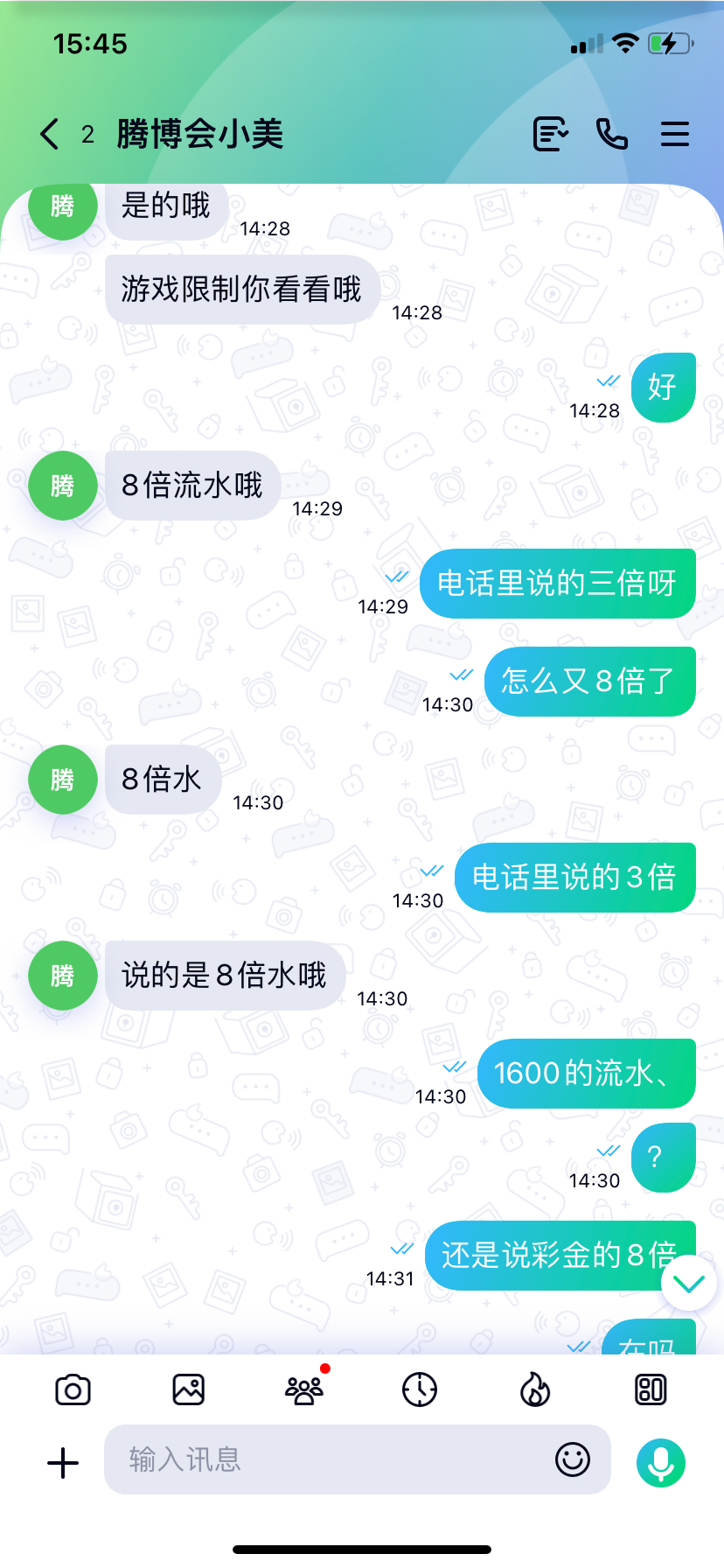他妈了个臭逼电话里说的是三倍,流水冲完了说又说8倍