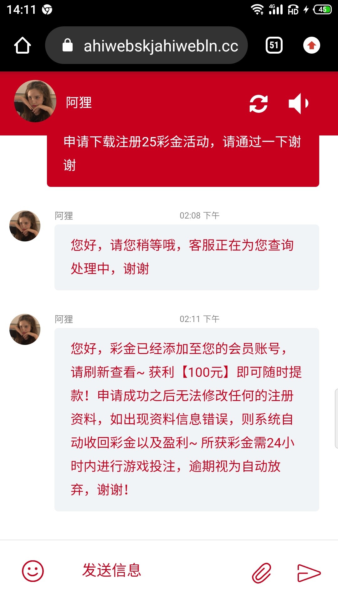 新用户下载APP注册绑卡找在线客服领取下载注册送25/100提现