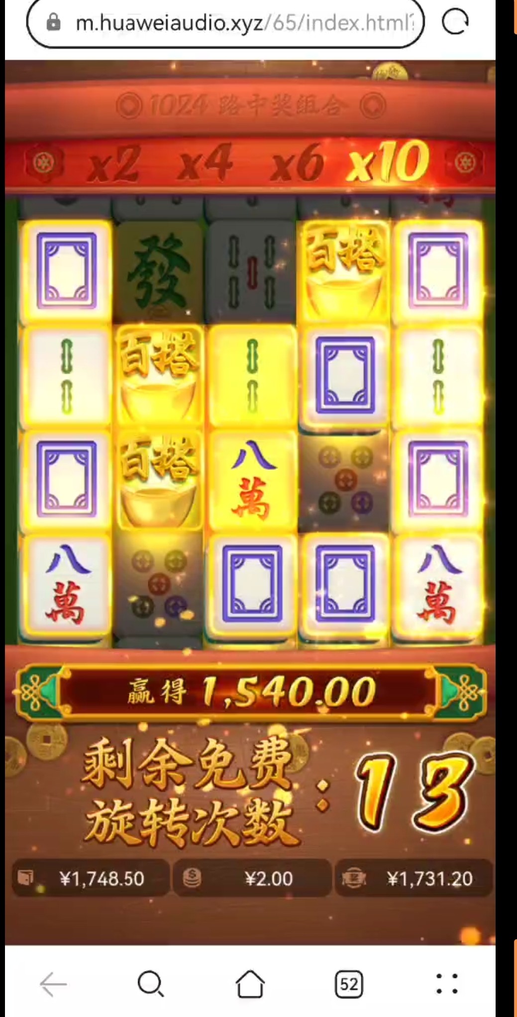 牛逼啊卧槽,后面还有13次免费 狗庄看你很久没玩了,送点钱给你助助兴 麻将我从来没中过这么高的倍数