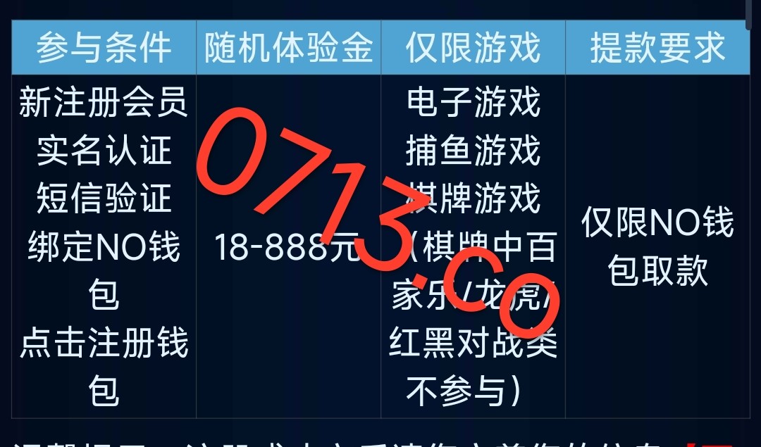 新用户下载app注册绑卡绑定手机号绑定NO钱包 优惠里面自助申请38彩金 限制游玩电子捕鱼棋牌 最低提款200元