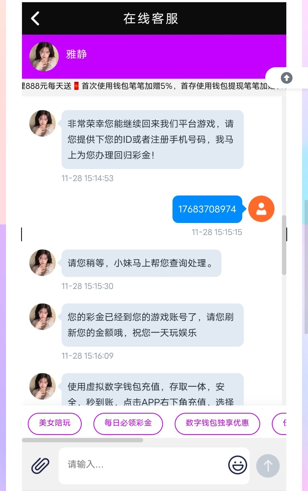 很久没玩的老用户去找客服领取回归彩金!新用户无视!