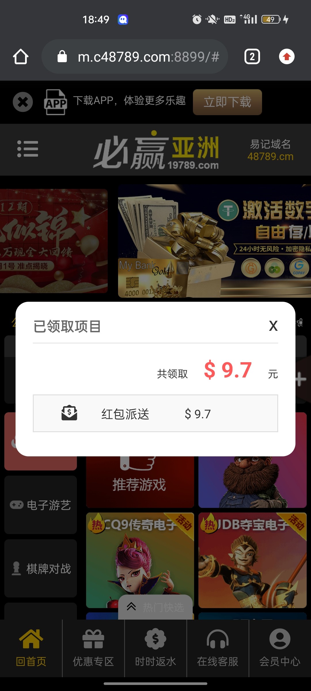 领取到5.7,没了