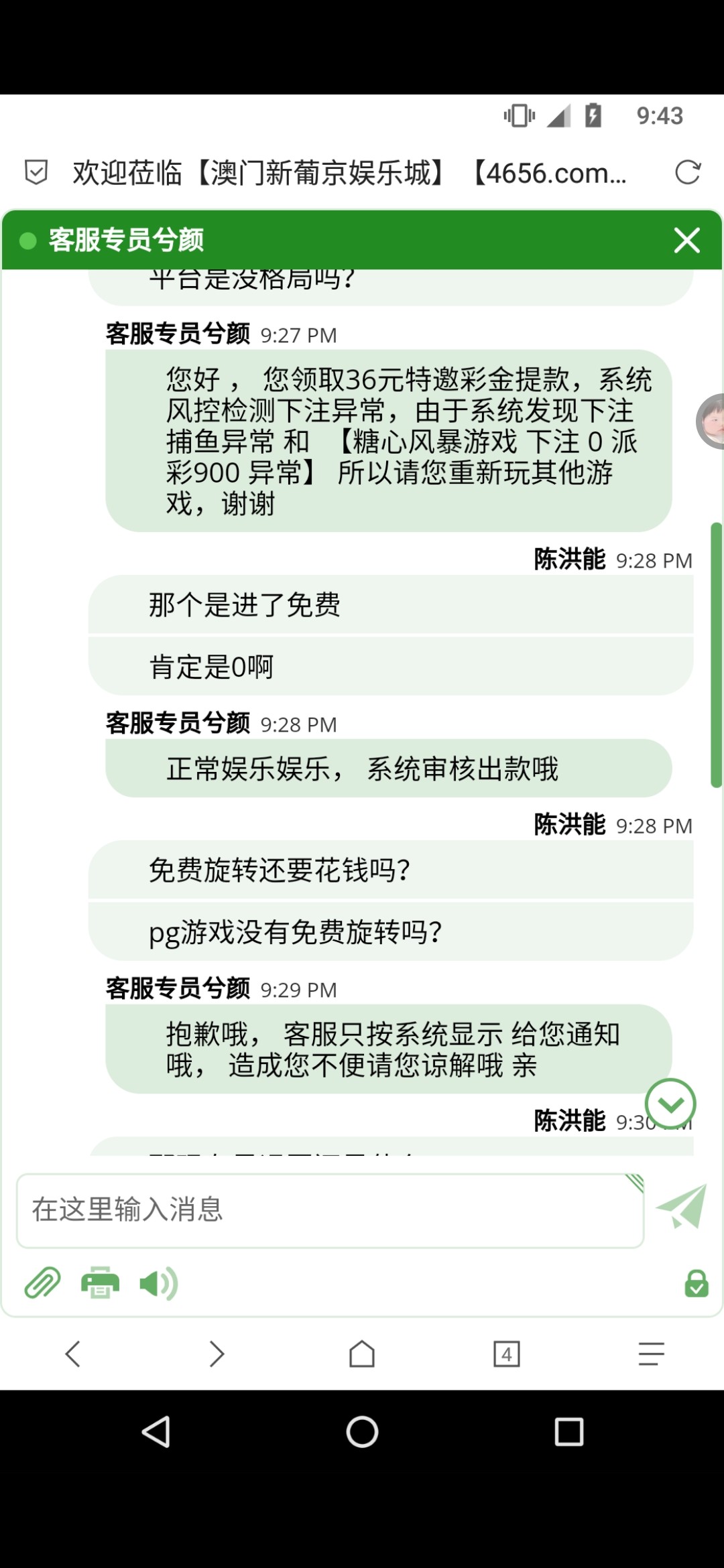 澳门新葡京4656 提现850各种借口加流水1万打够了赢了1400提现平台急眼加5万流水 打够5万赢到2000提现继续追加我10万流水《我不是赌神2000打不了10万》 客服说pg免费旋转不扣金额不给提现《pg旋转出免费旋转还要扣钱吗?这种野鸡台的台词平台各种玩》 财神捕鱼打免费炮说下注0单注异常 《看我发的捕鱼炮弹介绍》此平台链接4656.com慎玩 赢小额200就提切记超过600必加流水各种黑想赢大钱的谨慎此野鸡台没格局客服聊天截图我发下面了各种恶心三句名黑台请慎重,且玩且珍惜,远离赌博。