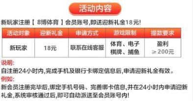 新用户注册绑卡 联系在线客服申请18元彩金 限制游玩体育电子捕鱼棋牌 最低提款100元