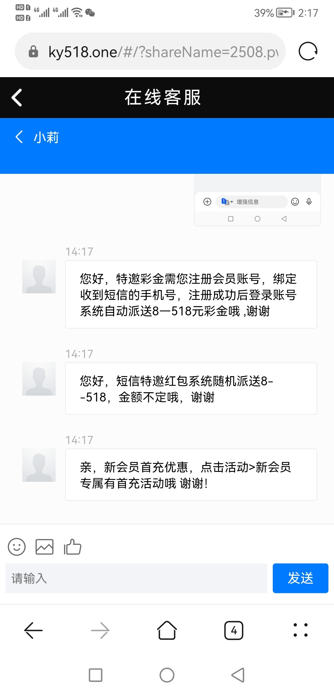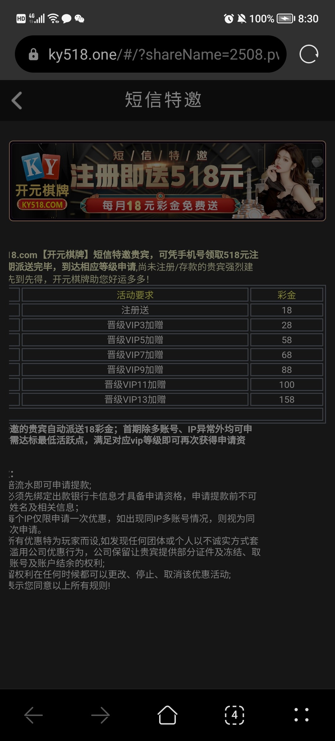 您好,特邀彩金需您注册会员账号,绑定收到短信的手机号,注册成功后登录账号系统自动派送8—518元彩金哦 ,谢谢