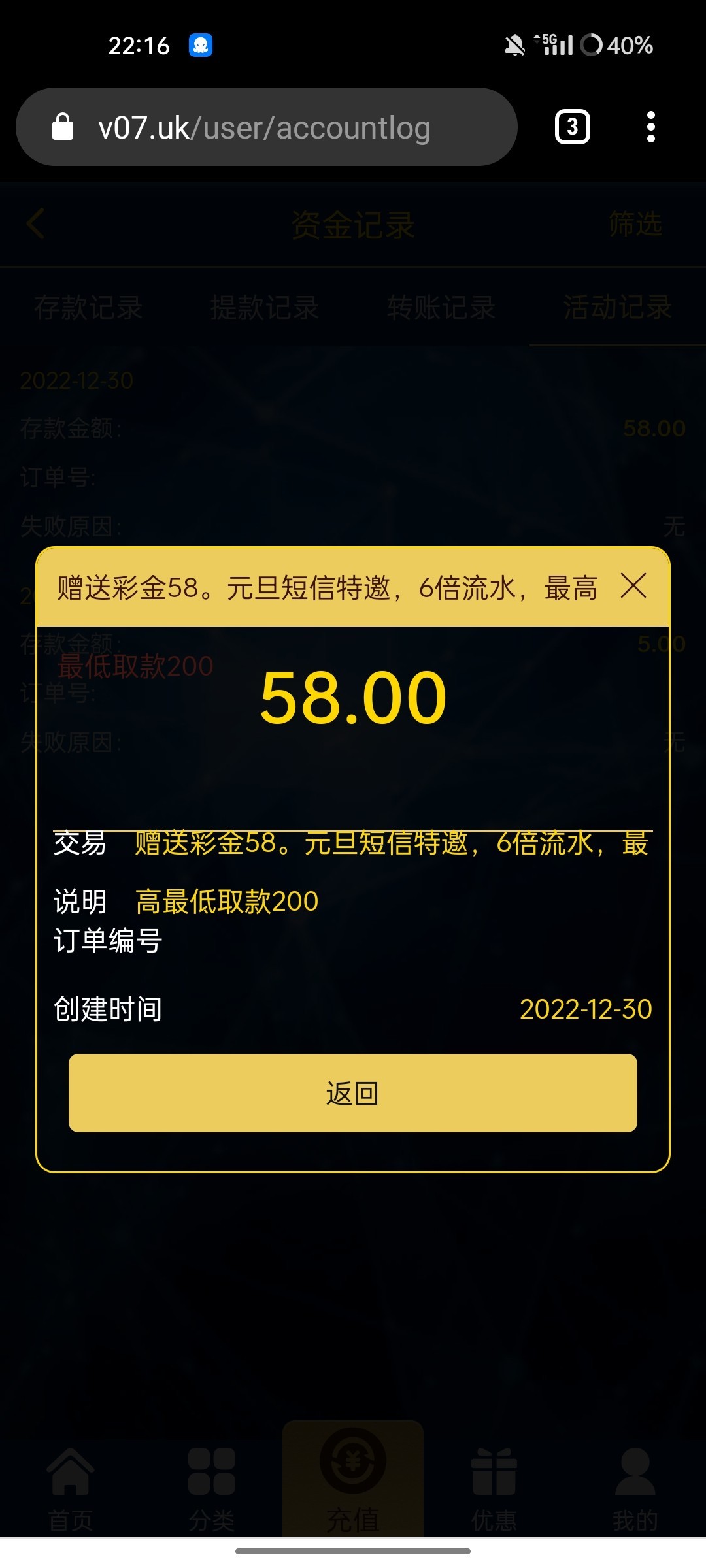 上年注册的号都有彩金 最低58