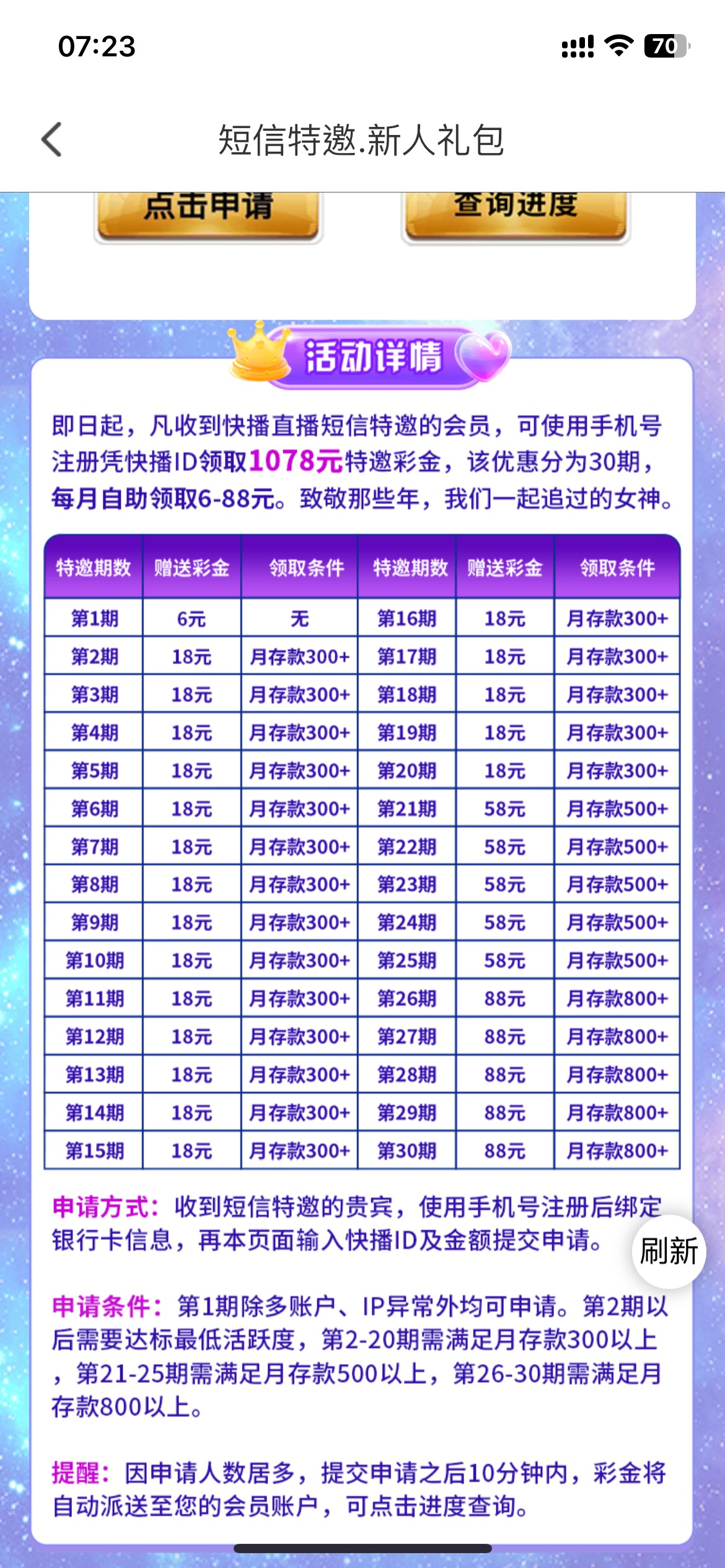 下载注册APP绑定银行卡手机号,活动里自助申请!