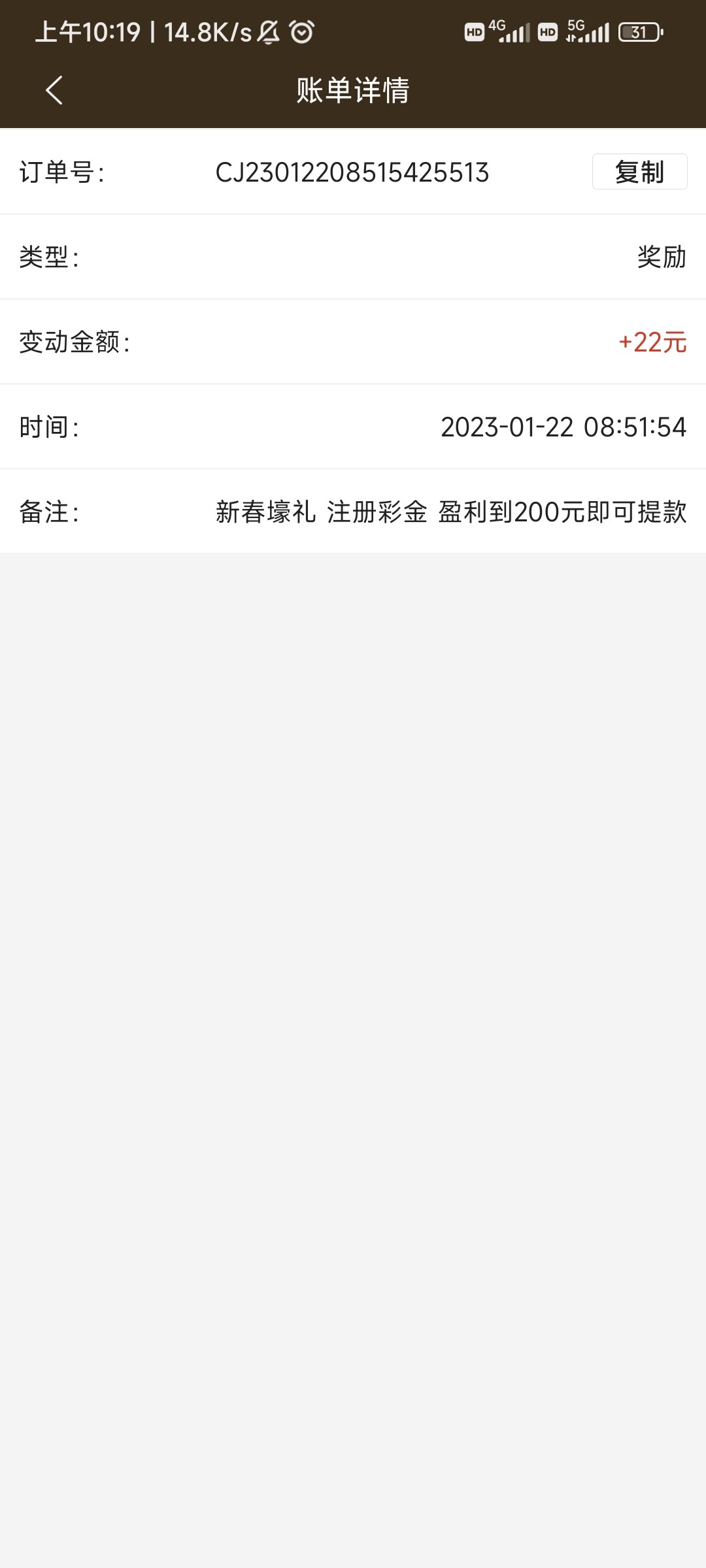 22自动发的,前面老用户注册才有