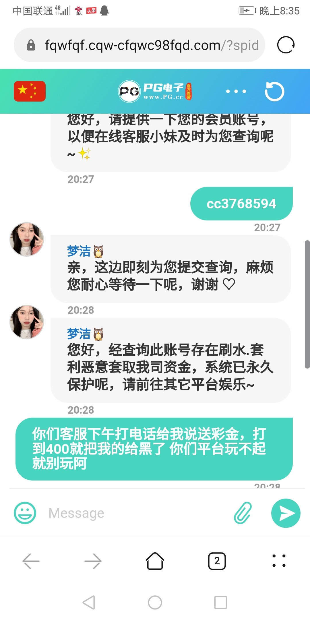 PG电子客服打电话说送彩金,打到400就被黑了
