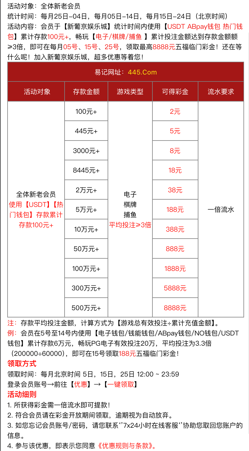 【澳门新葡京】每日三波千万福利红包免费领取,最高可获68445元