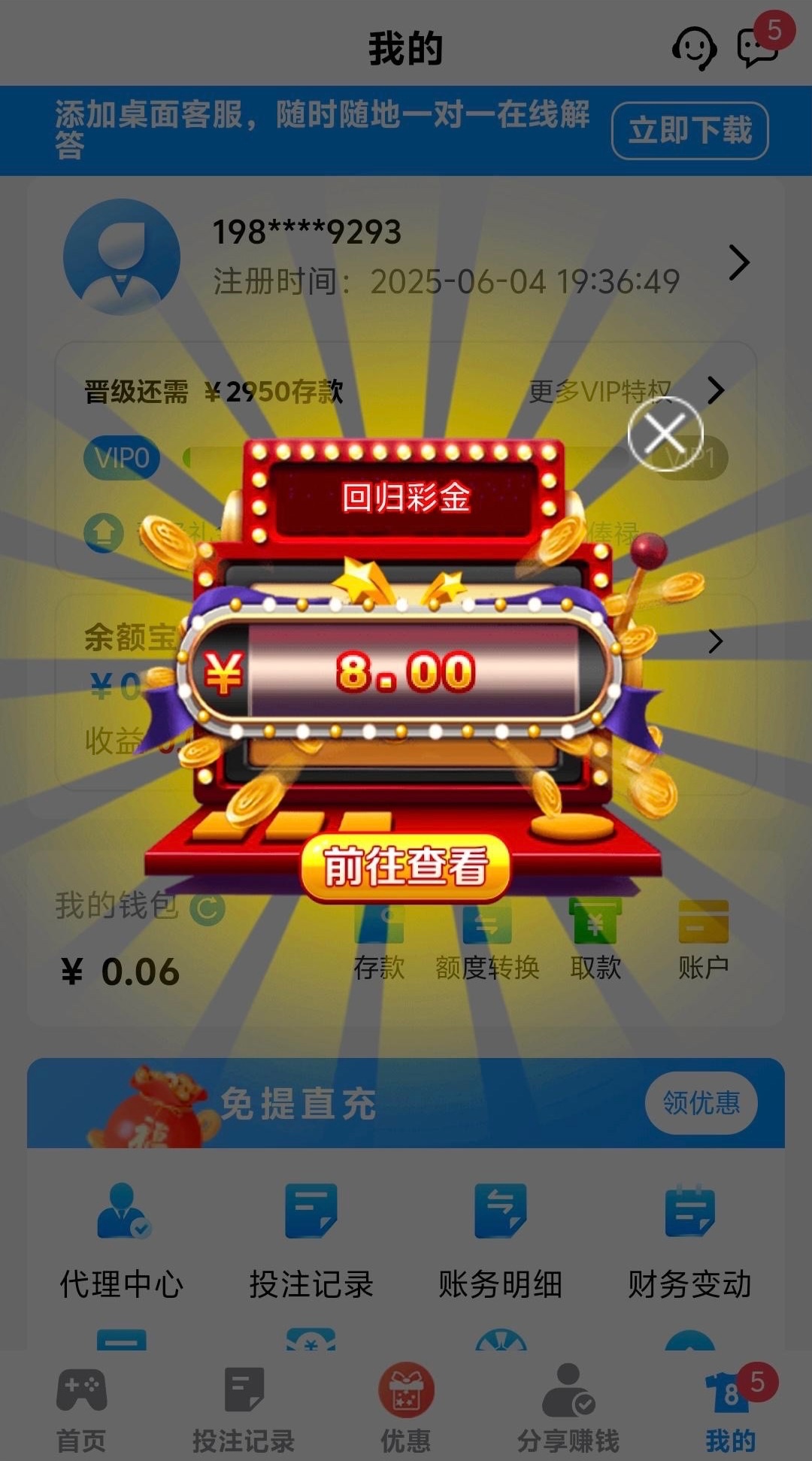 有充值过的兄弟登入上看看有没有弹窗显示