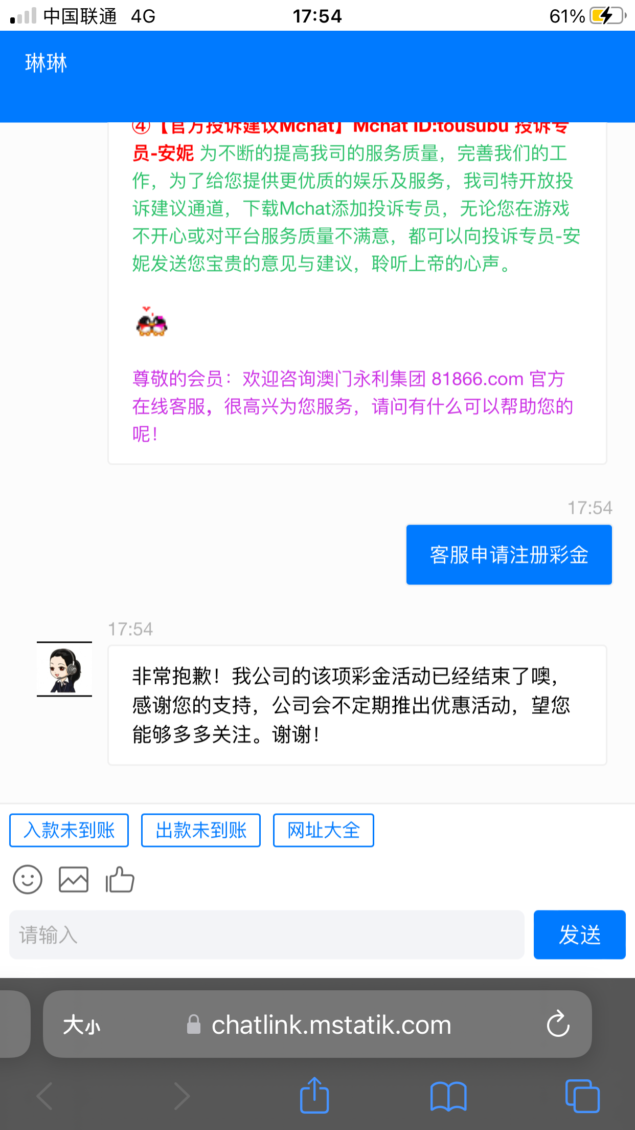 非常抱歉!我公司的该项彩金活动已经结束了噢,感谢您的支持,公司会不定期推出优惠活动,望您能够多多关注。谢谢!