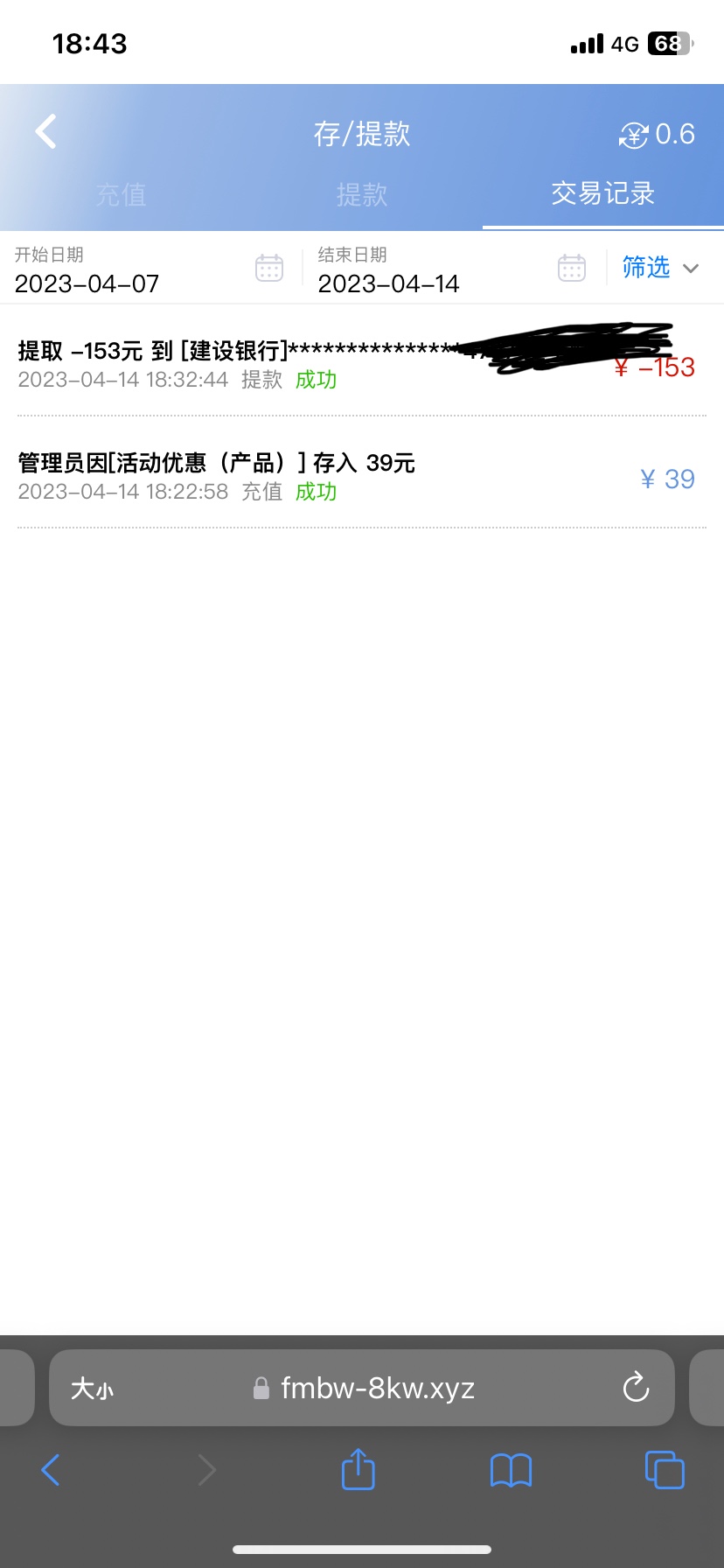 到账153