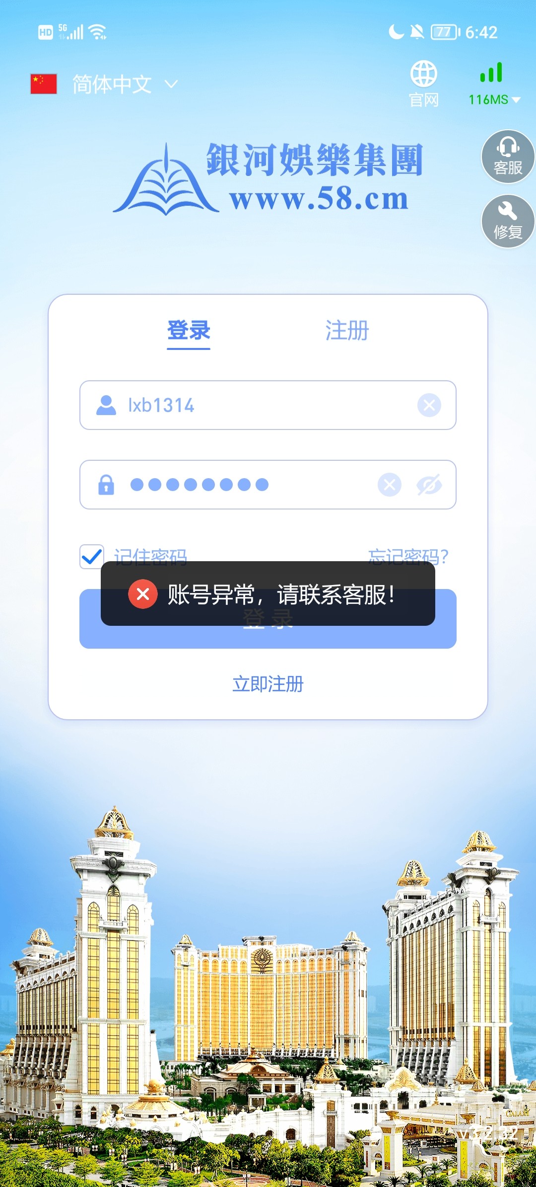 银河58 提现400秒封号