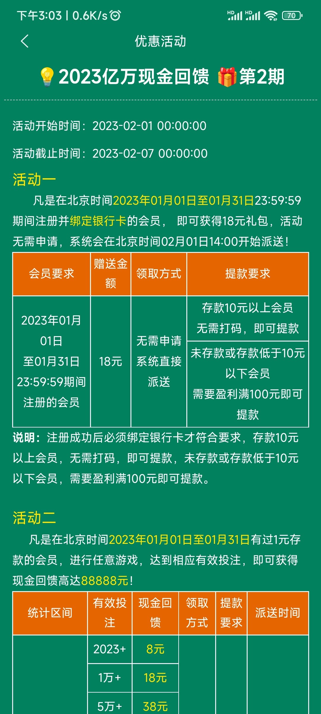 在2023年1月1日至1月31日注册的玩家均送18
