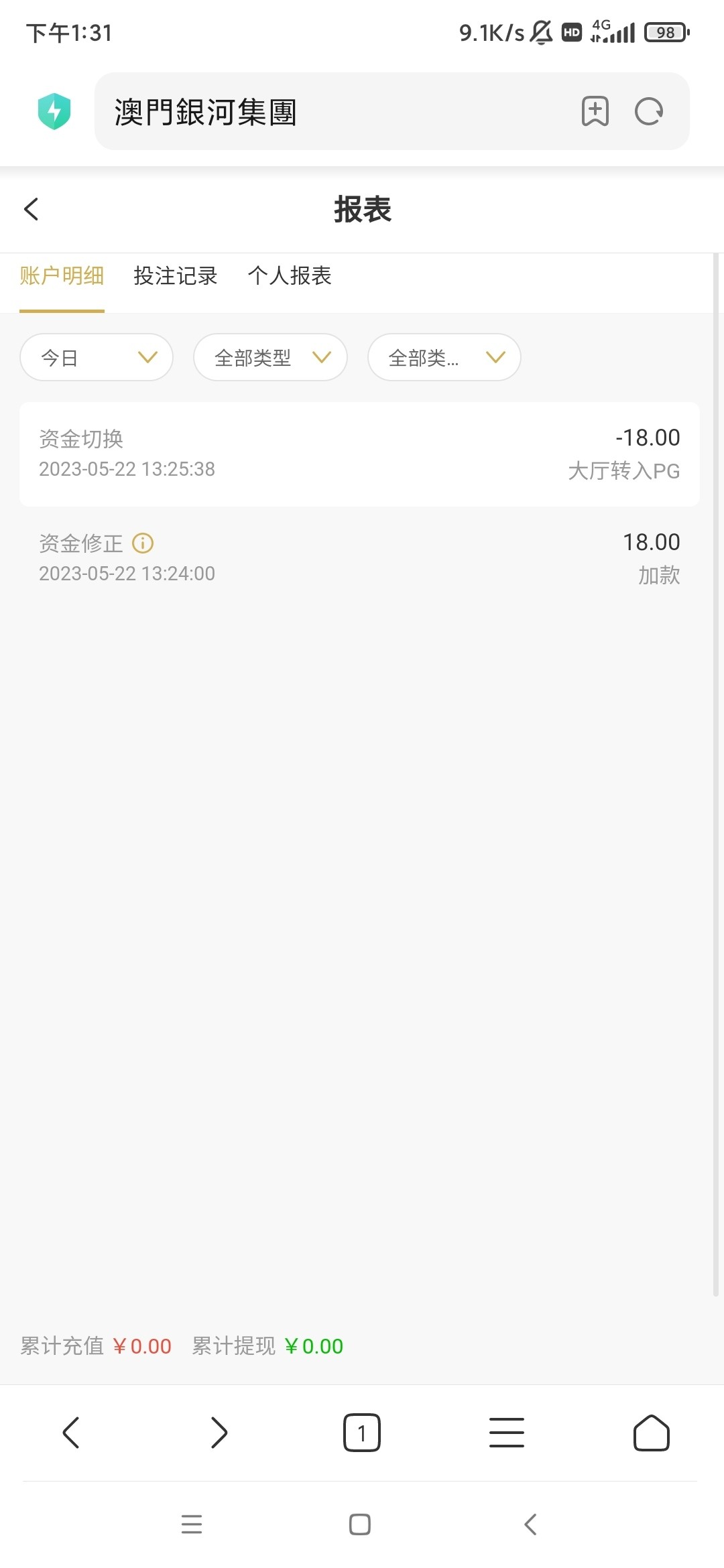 我运气还行,送的18没了,然后充一百提600,二存100黑了,在等明天的赠金