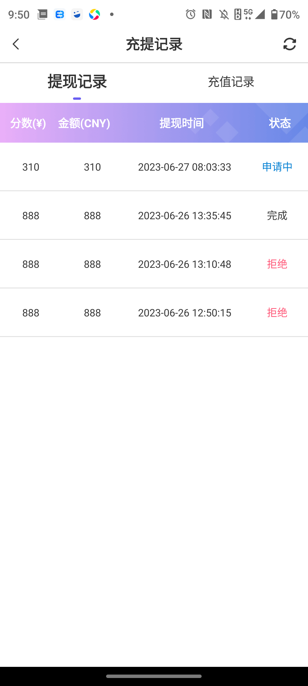 看看娱乐今天疑似跑路,不要去打100+100了,我还算活跃玩家,昨天给他们输了一千多,今天打回来300,提现快三小时了还没有动静,其他人也是一样。昨天提现20分钟之内解决