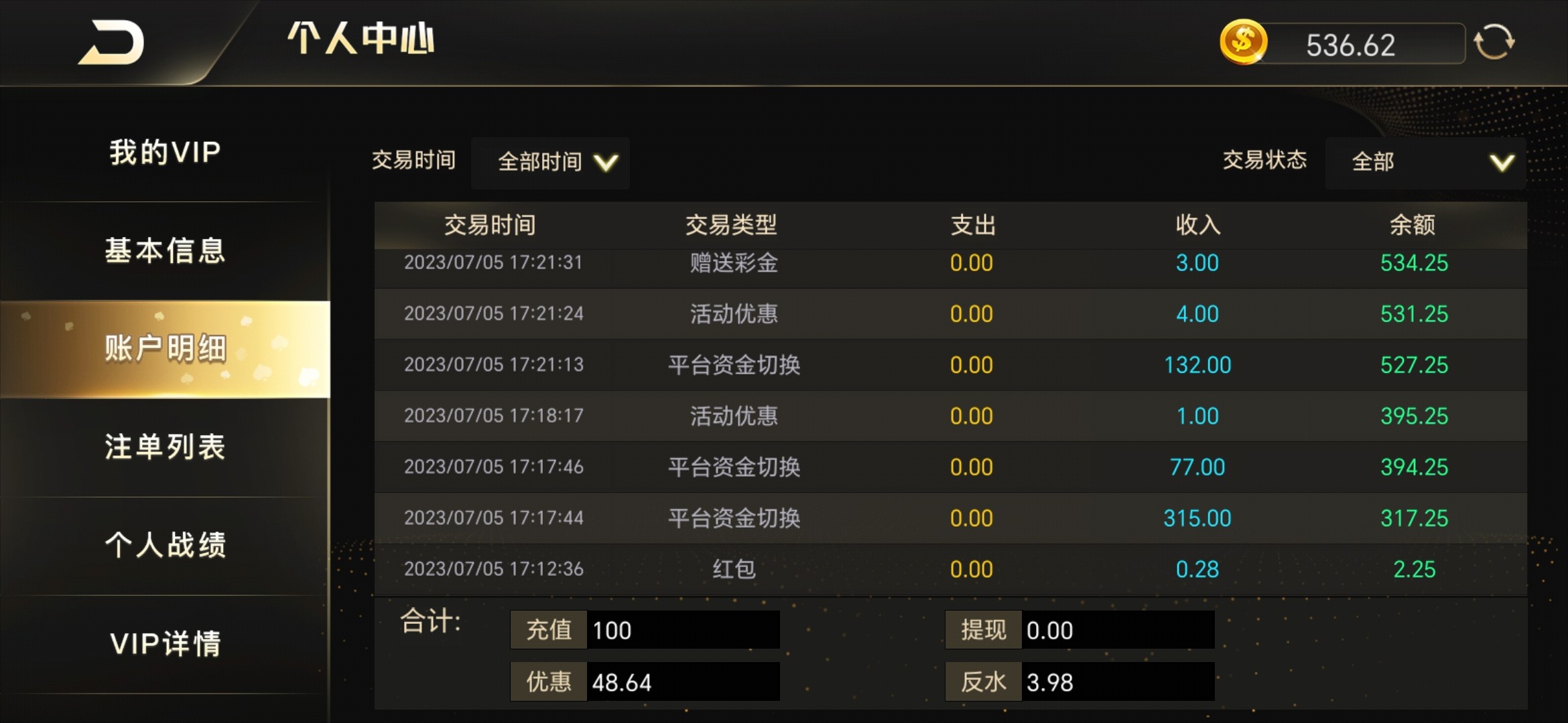 冲过一百就没充值了。